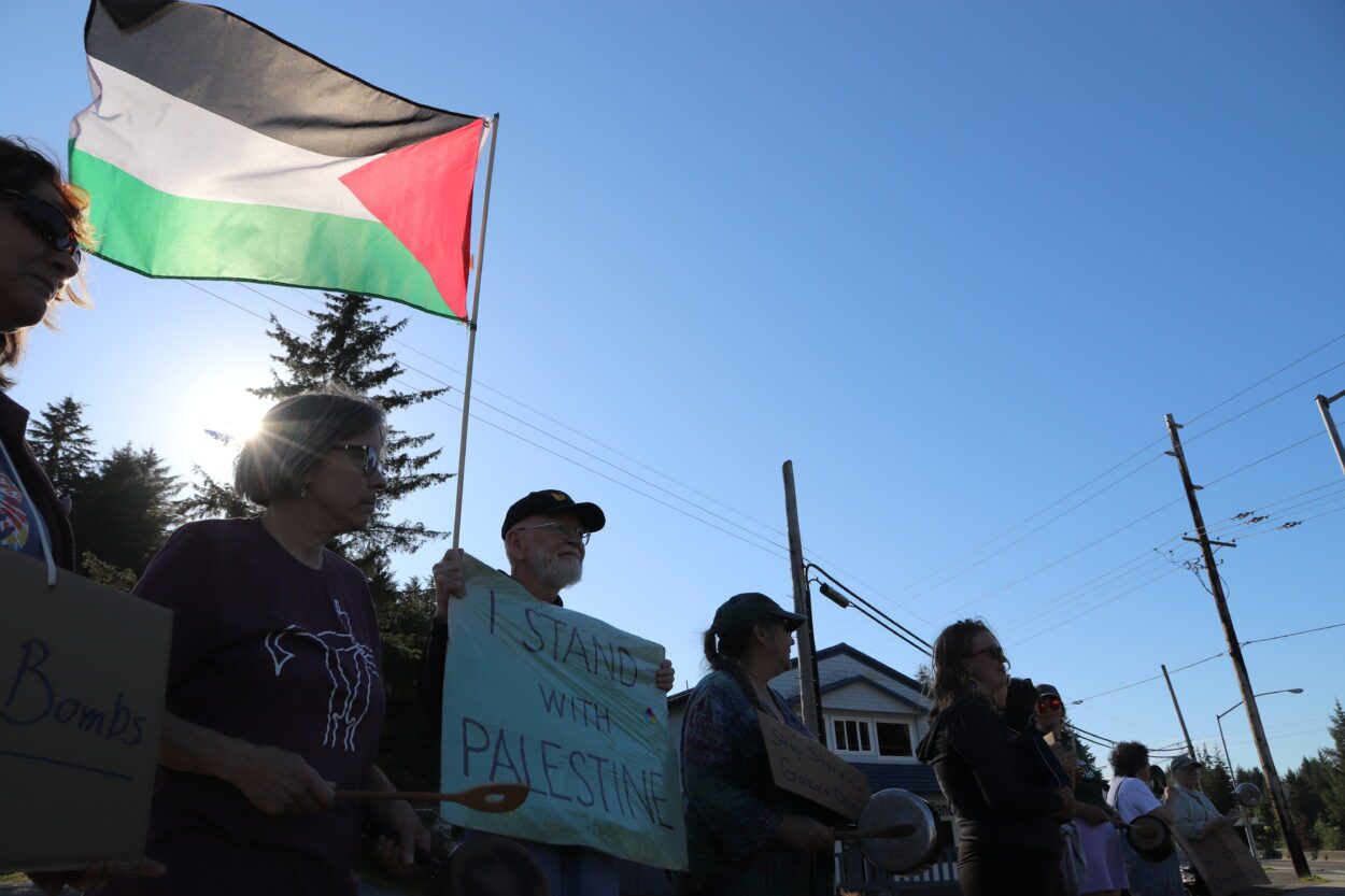 The group Sitkans for Peace and Democracy has been holding vigils every Saturday since December of 2023, initially calling for a ceasefire in Gaza. But this is the second emergency vigil the group has held in the past week.