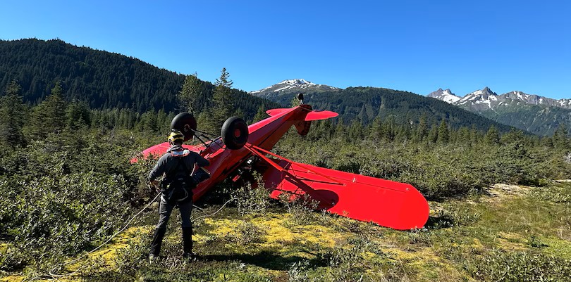 Around 10:30 a.m. a 5-person helicopter crew from Air Station Sitka located the pilot and overturned aircraft near the Endicott River. Magee said the pilot walked away from the accident unscathed.