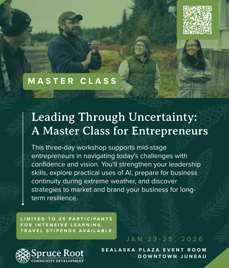 From January 23rd-25th, Spruce Root will be hosting a Master Class workshop for mid-stage Southeast Alaska entrepreneurs to help them navigate running a business amidst larger global changes from climate change to emerging technologies like AI. Michael Mausbach joins KCAW for the Morning Interview to discuss more of what participants could expect from the upcoming Juneau-based workshop, as well as how one could register for the event before its deadline of January 9th.