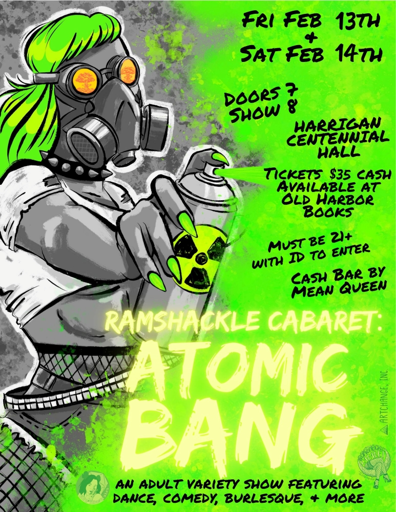 Ramshackle Cabaret presents “Atomic Bang” February 13 and 14 at Harrigan Centennial Hall. Organizers Shelby Williams and Christian Litten joined KCAW for the Morning Interview to discuss the upcoming burlesque and variety show, set in a post-apocalyptic world. This is the group’s 12th or 13th show since 2012, with a theme of a post-apocalyptic world. Listen to their conversation here: