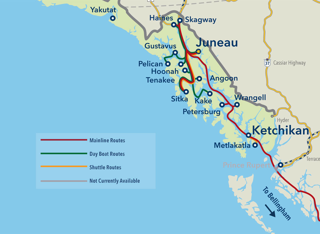 Only one mainliner – the Columbia – is scheduled to travel weekly through Southeast to Bellingham, Washington. That means a round trip every two weeks for most residents.