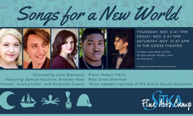 The Sitka Fine Arts Camp will present Songs for a New World this weekend, a musical that "examines life, love and the choices we make" through the stories of contemporary characters and their songs. This song cycle features music and lyrics from Tony Award winner, Jason Robert Brown, and is directed by Zeke Blackwell.