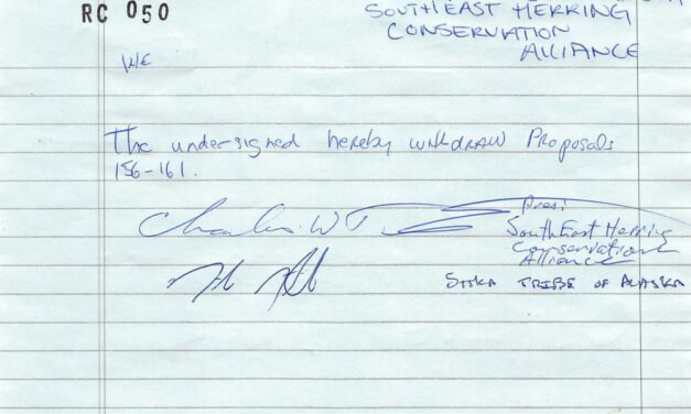 One of the most important policy decisions taken by the Alaska Board of Fisheries at its Anchorage meeting last month, was taking no action on a slate of six competing proposals for herring management in Sitka: three from the Sitka Tribe, and three from commercial seiners. After over two days of testimony and committee work, the parties submitted a joint, one-sentence note withdrawing their respective proposals.