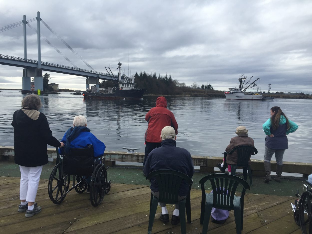 As the fleet awaited word for an opening this morning, a smaller fishery was in action this afternoon (03-22-16). Staff at the Sitka Pioneer Home brought a dozen residents to jig for herring in ANB Harbor.