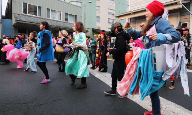 A famously dark and wet holiday in Sitka, Halloween dressed up as a beautiful, sunny day on October 31, 2022. Hundreds of trick-or-treaters took advantage of the clear skies to roam down Lincoln Street, collecting candy from downtown businesses participating in the Chamber of Commerce-sponsored event. Read More