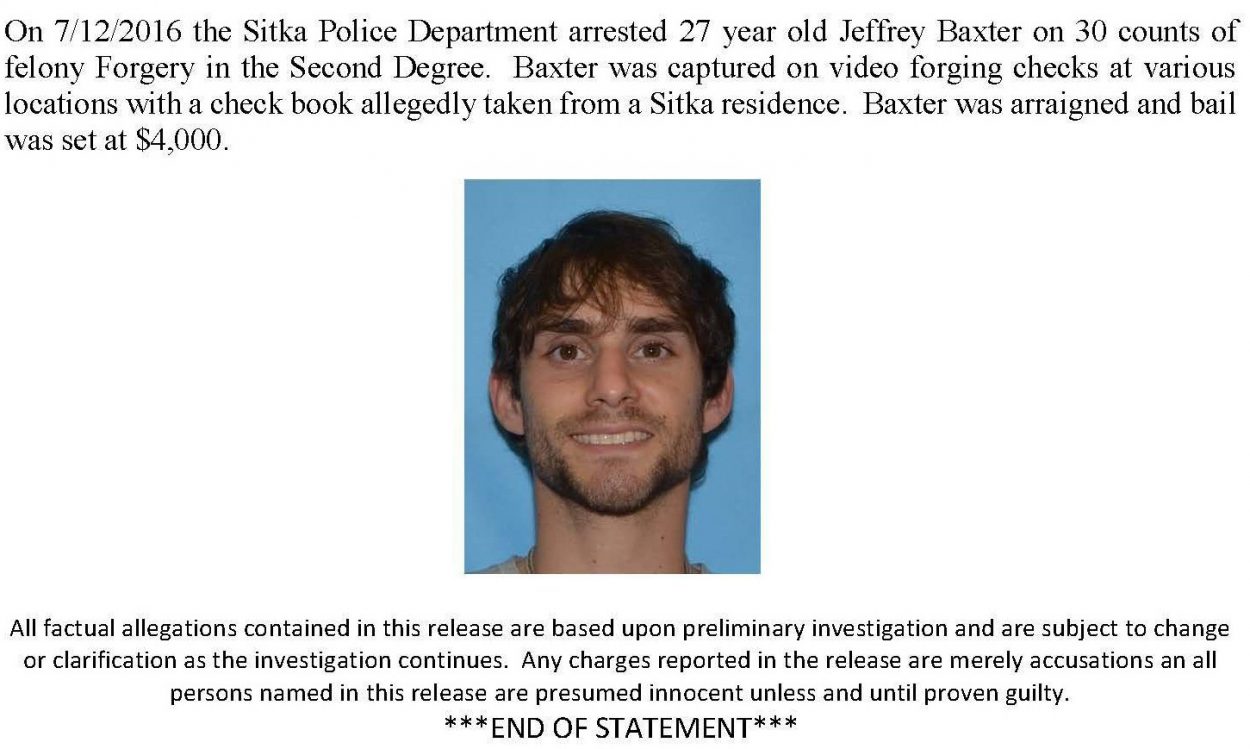 A grand jury has indicted a 27-year-old Sitka resident for forging almost 30 checks from a local tour business.