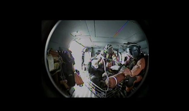 A man suffering from chest pain was hoisted from a fishing vessel by the U.S. Coast Guard Wednesday night (07-26-17). Pilot Lt. Robert McCabe said the hoist was one of the most challenging the Air Station has ever done because of the low visibility.