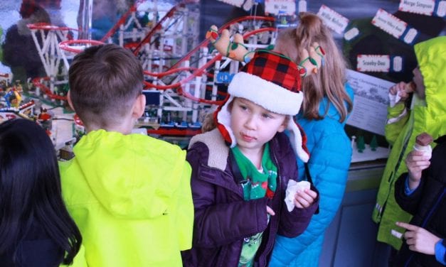 Students in Sarah Eddy's first grade class at Baranof Elementary enjoy ice cream and the miniature Lego amusement park in the window of Harry Race Pharmacy and Soda Fountain in downtown Sitka. Of special interest? A tiny rock guitar player modeled after Baranof PE teacher Joe Montagna, or "Mr. Joe."