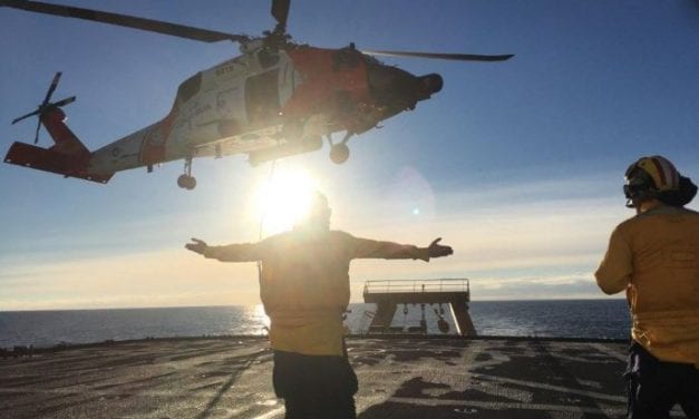 For the crews of Coast Guard Air Station Sitka, it's not all about maritime hoists and landing on mountain ridges. Here a helicopter aircrew practices landing on the fantail of the Coast Guard icebreaker Healy on Southeast Alaskan waters November 24, 2018. Maintaining proficiency in deck-landings on ships at sea is an important part of the training at Air Station Sitka.